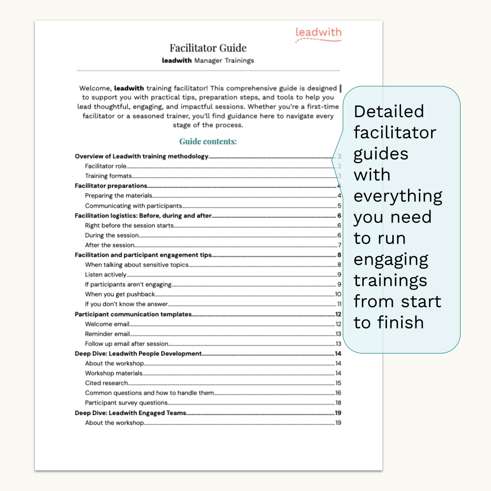 Employees want to grow and improve, but development often happens unevenly—which leads to performance and retention issues. Leadwith People Development teaches managers why perceived fairness matters so much to employees, how to delegate work in a way that strengthens their entire team, and to give feedback that improves performance. Managers learn the skills they need to support everyone on their team. Your organization gets better engagement, performance and retention.